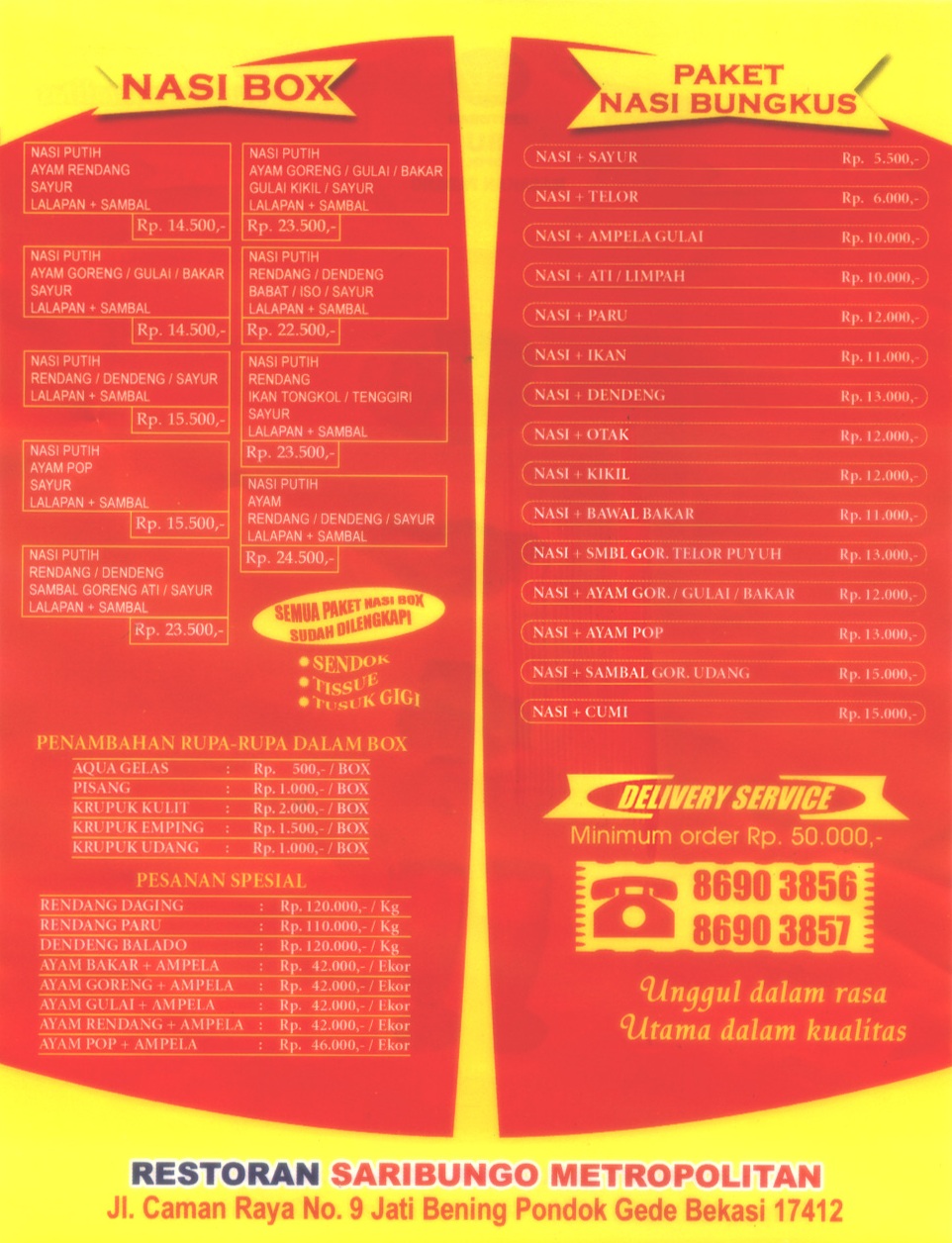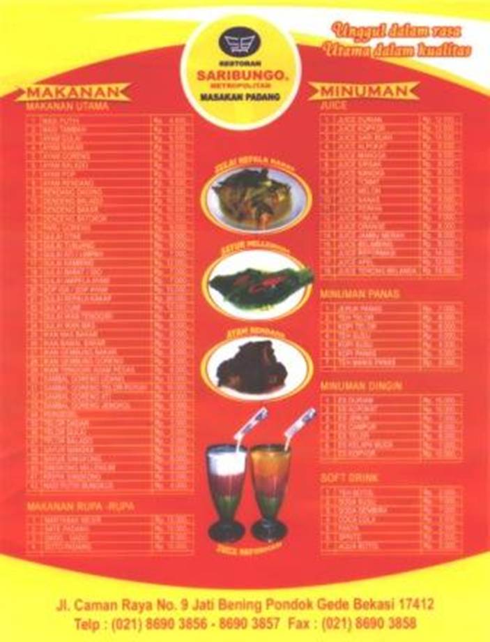 RESTORAN SARIBUNGO ® METROPOLITAN MASAKAN PADANG Unggul dalam rasa Utama dalam kualitas